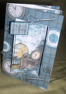 This one has a cog mask embossed onto textured silver card, then cut out, and Daubed with Ranger Alcohol inks, behind the topper. this is a very Small card, being the rear panel of the Stepper card, form a previous post, lol